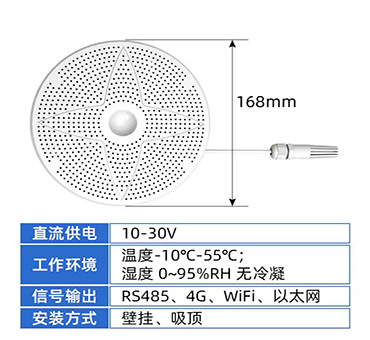 可測量溫度、濕度、PM2.5、PM10、大氣壓力、光照、噪聲、異味、TVOC、CO2、甲醛、O3、CO、H2S、NH3等多種要素。