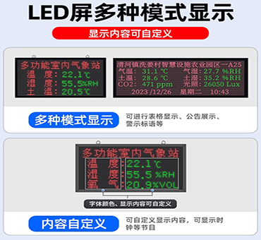 LED屏可進(jìn)行表格顯示、公告展示、警示標(biāo)語等多種模式顯示,可自定義顯示內(nèi)容,可顯示時鐘等節(jié)目。