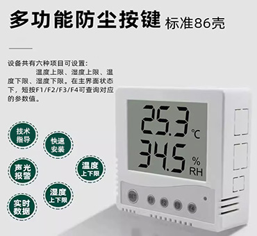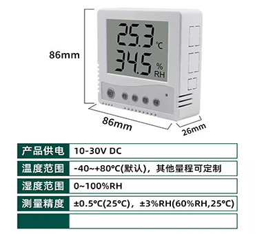86液晶殼溫濕度傳感器廣泛適用于機(jī)房、倉庫等室內(nèi)需要實(shí)時(shí)測量顯示溫濕度的環(huán)境。